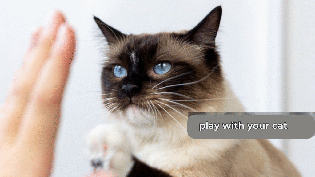 Try spending 10–15 minutes twice a day playing with your cat using a feather wand or laser toy. You can also rotate toys every few days to keep things exciting.