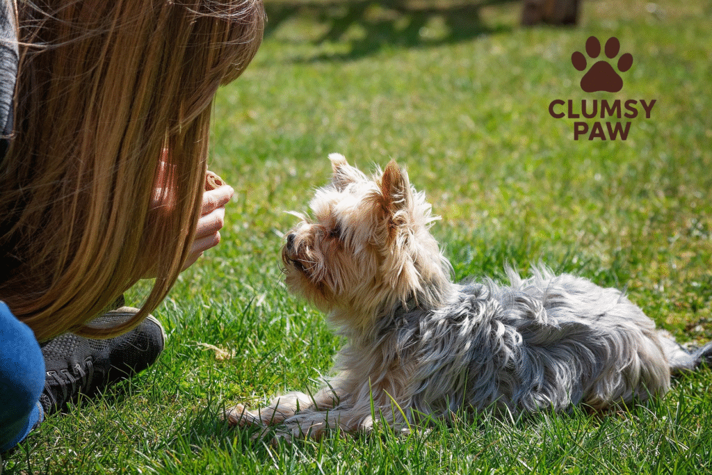 Using multiple phrases for the same command (like “sit down” and “sit”) confuses your puppy.